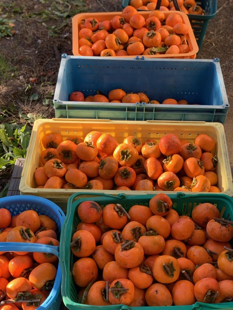 今年は柿の“なり年”。昨年よりもたくさんの柿が実り、ありがたいことに、収穫かごもずっしりです。
